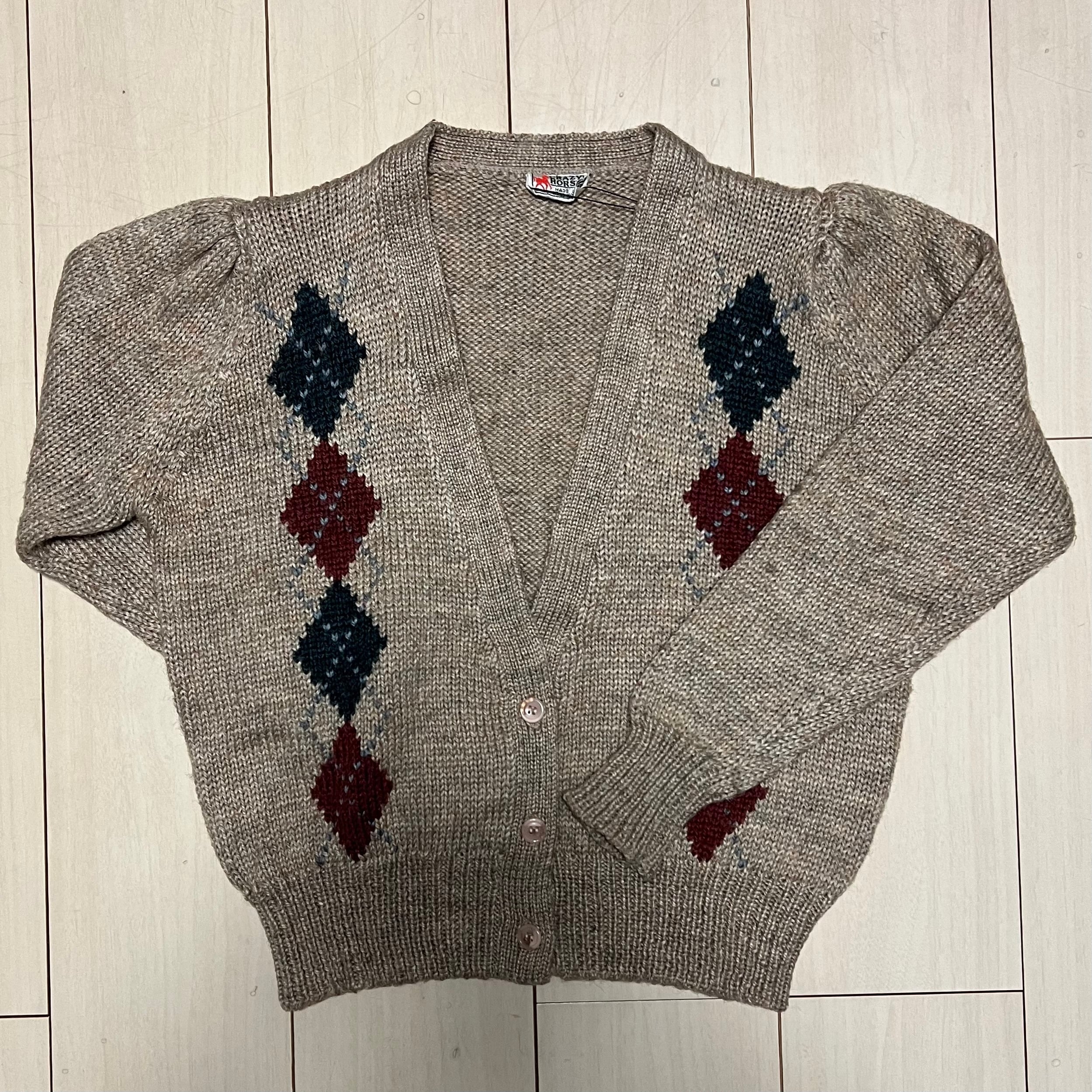 【80s】CRAZY HORSE カーディガン ニット アーガイル柄