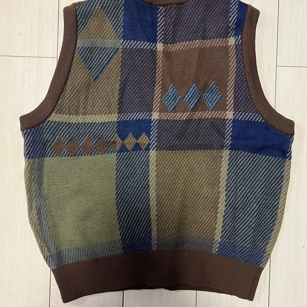 【90s】MSSTERS マスターズ 総柄 ニットベスト 毛100%
