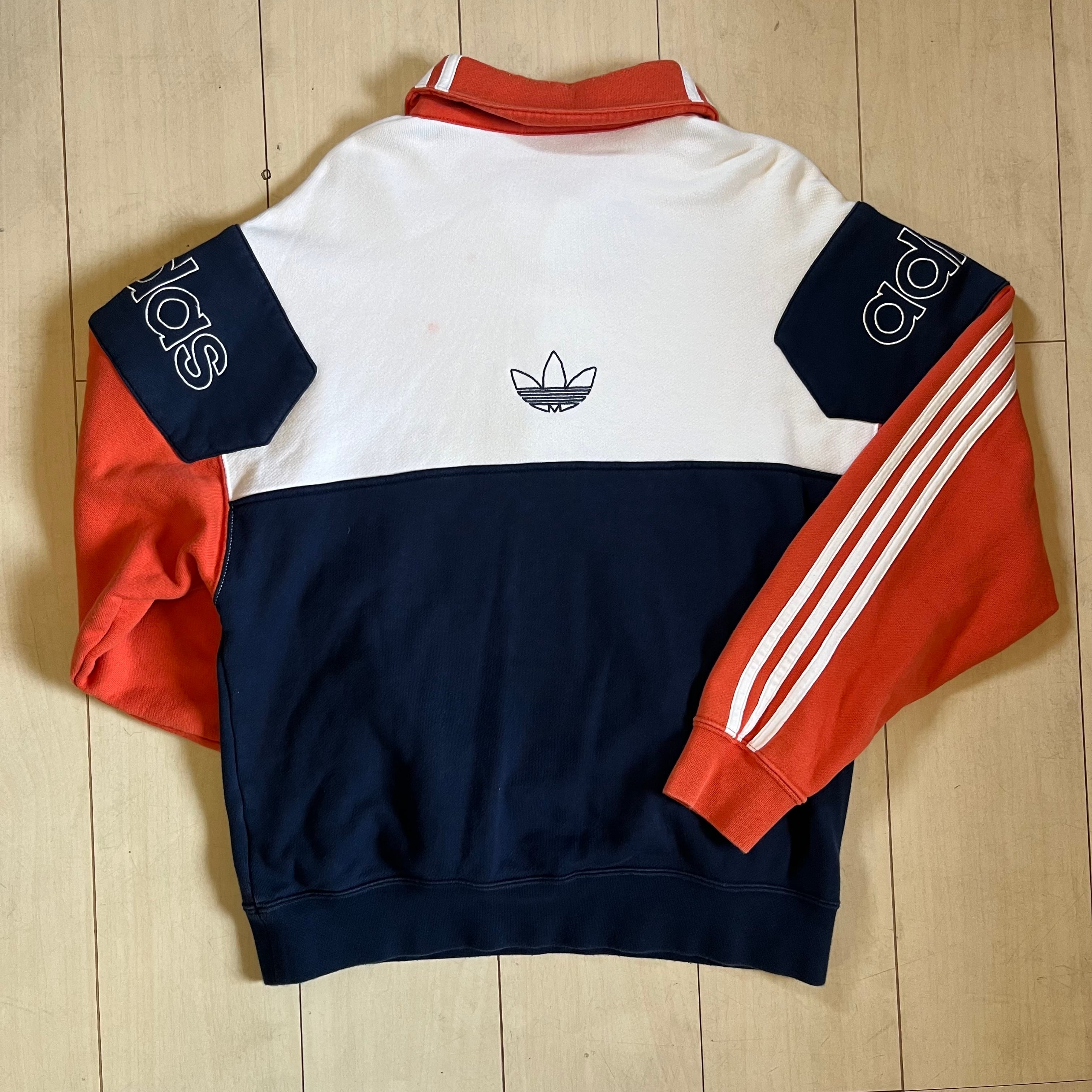 adidas トレーナー スウェット ブランドロゴ 襟付き M